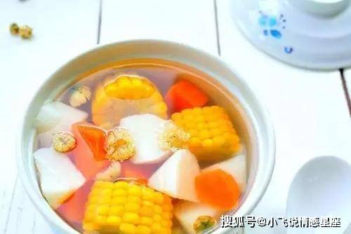 材料:玉米250克,胡萝卜100克,山药150克,百合15克,菊花0.5克,生姜4克,盐适量,蔬果调料粉适量