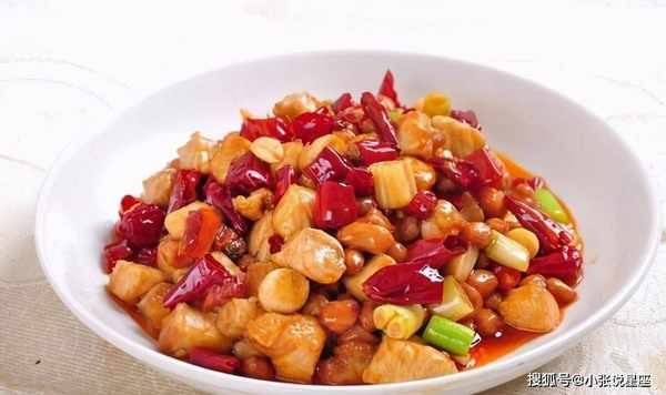 原料:鸡肉、腊肉225克、花生50克、大葱45克、姜10克、干辣椒8克、花椒1.5克、色拉油60克、盐2克、盐2克料酒1克,味精1克,酱油6.5克,白糖10克,醋7克,淀粉22克