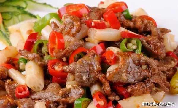 1.辣椒切碎,泡水,滤干备用。姜、葱、八角切片;新鲜牛里脊冷冻2小时,切成薄片,要很薄;