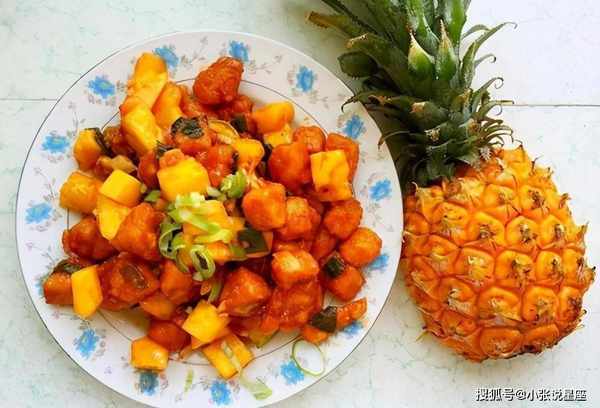 准备:1、猪里脊肉两面换刀,切成小块,用酱油、盐、胡椒粉、蛋清腌半小时;腌肉的同时,菠萝切块,加入冰糖煮成冰糖菠萝。煮熟后,大部分都算水果了,连一小碗菠萝都可以煮了;