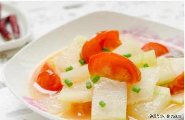 1、冬瓜去皮切小块,西红柿洗净切碎,小红葱切碎;