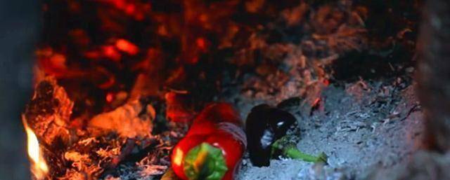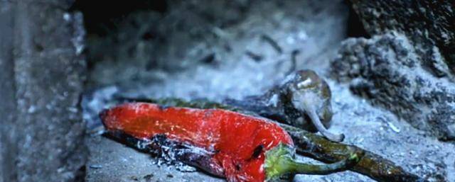 她去菜园里拿来新鲜的辣椒,洗干净,放到柴火炉里,用炉子里炭火的温度直接把辣椒烤熟,然后轻轻拍打,擦掉表面的浮灰。.