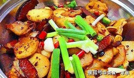 【干锅土豆片】食材:土豆3个、腊肉1块、洋葱1个、新鲜青红辣椒各几个、大蒜适量。