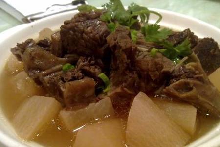 食材:白萝卜,牛腩,啤酒,桂皮,山楂,香叶,姜,葱,盐,香菜。