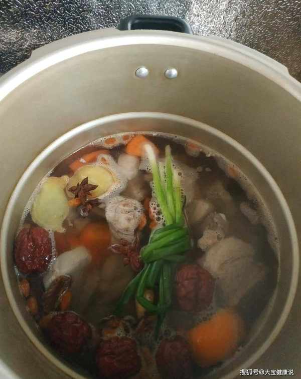 原料:排骨500克、胡萝卜1根、葱、姜、料酒、盐、红枣、枸杞