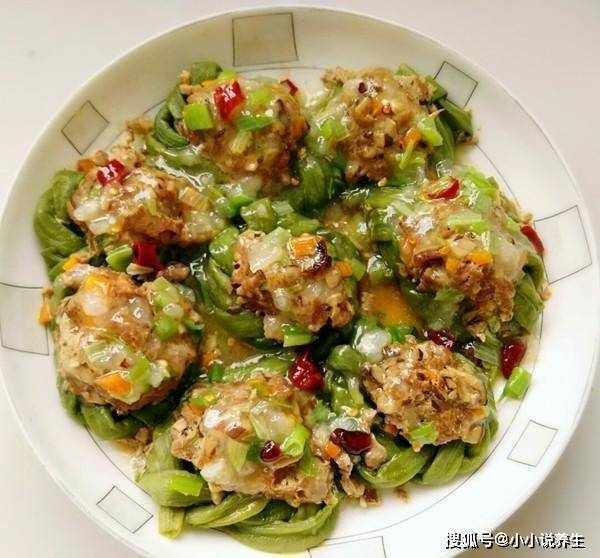 2、将豇豆放入开水锅中煮约1~2分钟,捞出,放入冷水中沥干水分;胡萝卜去皮洗净,切块装盘;将豇豆一个个打结,卷成一个圆圈;3.将调味好的肉馅放在豇豆圈上;等蒸锅里的水烧开,装盘;盖上锅盖炖约10分钟;蚝油、生抽、糖、醋、香油少许搅拌调汁;将准备好的果汁浇在炖好的豇豆馅上。