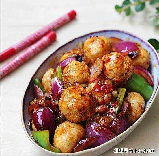 原料:鸡丸250克、辣椒1个、洋葱1个;郫县豆瓣酱1汤匙、糖2汤匙、葱1份、豆豉3瓣、生抽1茶匙;