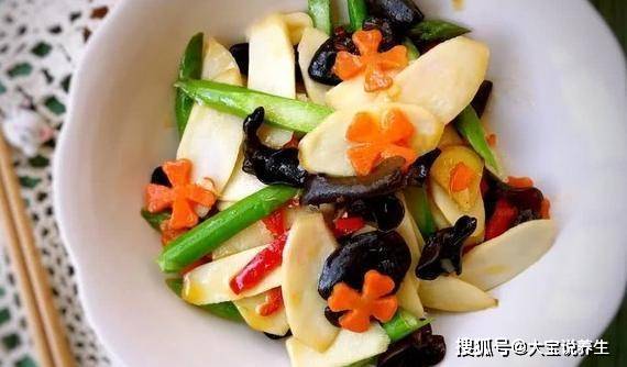 原料:茭白2根,瘦肉100克,胡萝卜适量,木耳适量,郫县豆瓣适量,葱、姜、蒜各适量,泡椒适量;