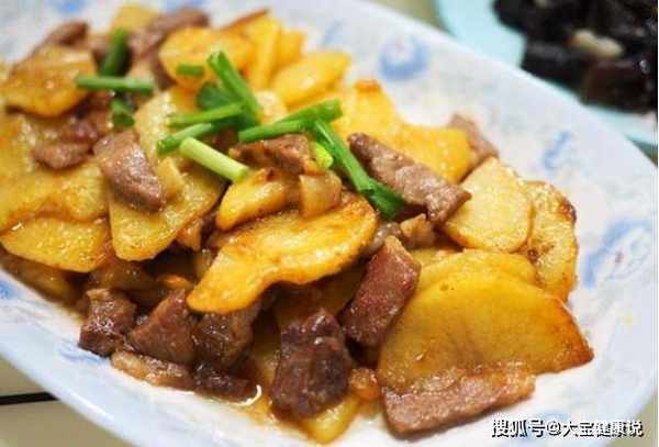 1、土豆去皮切片,猪肉用盐、味精、淀粉、酱油腌制片刻。