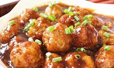 8.放入丸子,快速翻炒至丸子沾满酱汁即可出锅。
