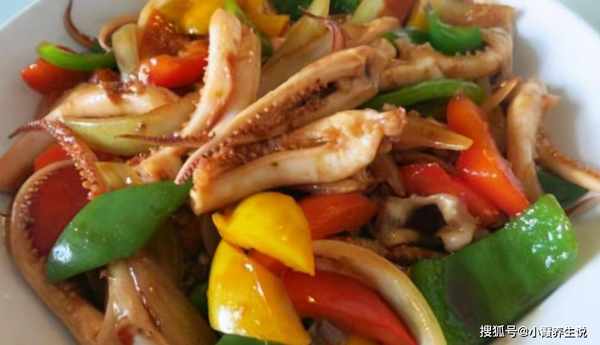 材料:鱿鱼一条;油一勺,盐少许,青红椒各少许,姜末少许,豆瓣酱少许,辣椒碎一勺;