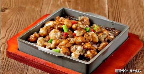 蚝肉洗净沥干,撒上红薯粉炸至酥脆,加少许红辣椒和蒜苗文火爆香。将黑胡椒汁放回锅中,加热使酱汁变稠。铁板烧热,将切碎的洋葱放在底部,将炸好的牡蛎肉放在切碎的洋葱上。