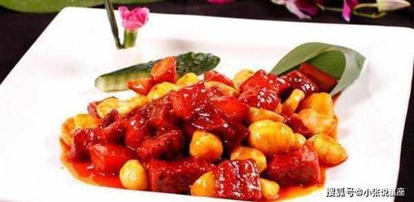 9.盖上锅盖,大火煮,转小火煮25-30分钟10、水干80%时,加入盐和少量鸡精,开大火翻炒,使酱汁浓稠均匀挂在栗子和肉上。当水干90%时,关火,盛入盘中,撒上洋葱