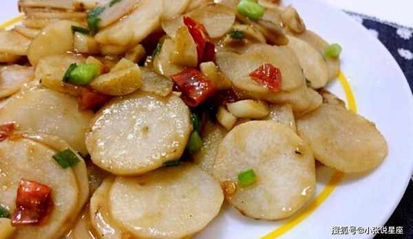 5.分开切小块!6.起一锅油,把蒜和辣椒爆香,下山药翻炒,加入生抽、陈醋和料酒(我用的花椒里的酒是用酒泡过的,很好吃!),加盐和味精(我给的是植物精,也不能有味精)。