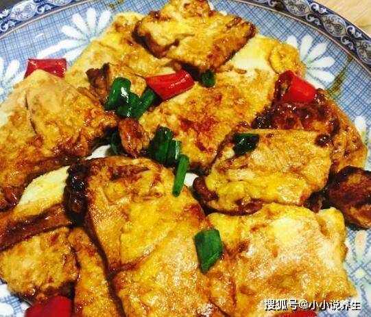 4、豆腐沾上蛋液,锅里油热,将豆腐煎至金黄色。豆腐很软,煮的时候很容易碎。耐心等待,直到一侧变成金黄色,然后小心地将其翻转过来。