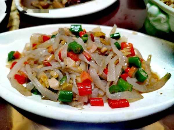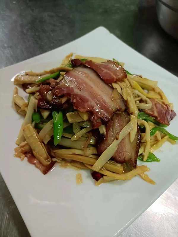 秦岭巴山的腊肉,每个县的都挺好,佛坪自然也不例外,甚至更好。山里土豆多,老百姓还是习惯叫洋芋。用洋芋粉制成的粉皮,光滑筋道,配上腊肉一炒,白里透红的腊肉变得亮晶晶的,吸饱了油脂的粉皮融入了腊肉中柏树枝的清香,淋上点白酒,加一把蒜苗,再撒上点红椒丝,颠两下就出锅,真的是香气扑鼻、令人馋涎欲滴啊!