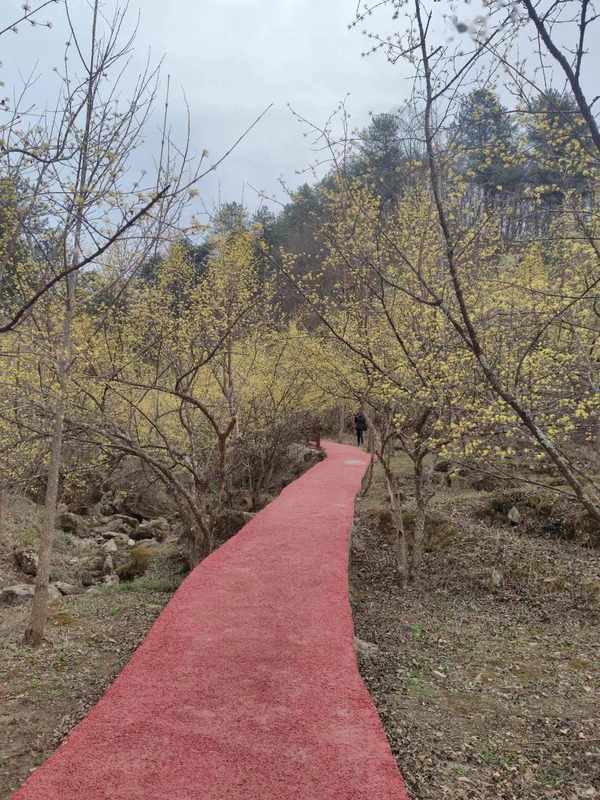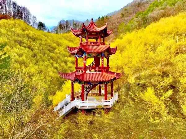 秦岭深处,佛坪县的山茱萸花开正茂,一片金黄。十万亩山茱萸一眼望不到边,金灿灿的花朵,漫山遍野,壮丽辉煌。茱萸谷里,一树树山茱萸,舒展着细长的枝条,朵朵小花,一簇簇,一团团,密密麻麻,迎风怒放,散发着淡淡的幽香。登上古色古香的观景塔,置身于金色的海洋之中,微风送来阵阵花香,我们的心都要醉了。春日暖阳,花海金黄,男女老少,信步徜徉,陕菜探秘团队兴致勃勃,心情格外爽朗。