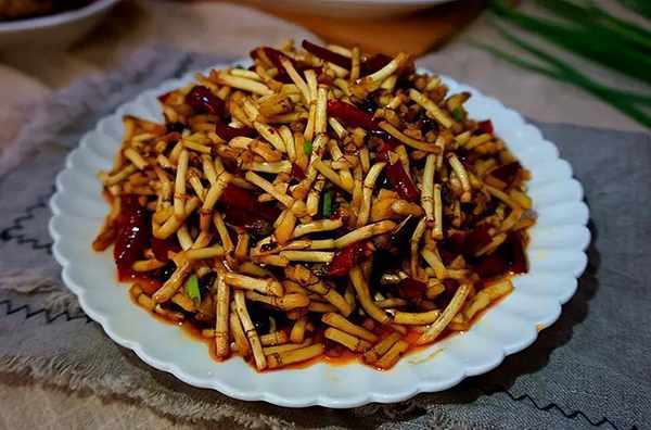 如何判断一个人是不是四川人?答案就是问他吃不吃“折耳根”。折耳根,人们又把它称之为“鱼腥草”,这是一种药食两用的食/药材,样子比较像缩小无数倍的罗汉竹,由于有淡淡的鱼腥味,所以很多人根本吃不惯。这是一道云贵川比较常见的美食,吃起来嚼劲十足,麻辣咸香,后味无穷,配上一碗香喷喷的大米饭,老下饭了。