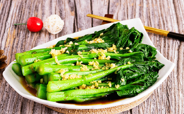 这是广东的一道名菜,由于卖相好口味独特,渐渐成为了风靡全国的一道传统美食。这道菜做法很简单,先准备好新鲜的青菜,水开放入煮熟,捞出整齐摆放在盘子上,然后撒上葱、姜、蒜末、盐、生抽,再滋的一声淋上热油,即可开吃,这道菜口感脆嫩,营养价值丰富,还特别的解腻,大鱼大肉吃多了,简直比肉还受欢迎。