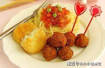 6. 烤过的或烤过的肉都可以做酱料。我喜欢把它们放在番茄酱里做意大利面,这样它们就会被一层糖醋番茄酱覆盖。和面条一起吃。看食材和丸子做法,居然是瑞典丸子做法~