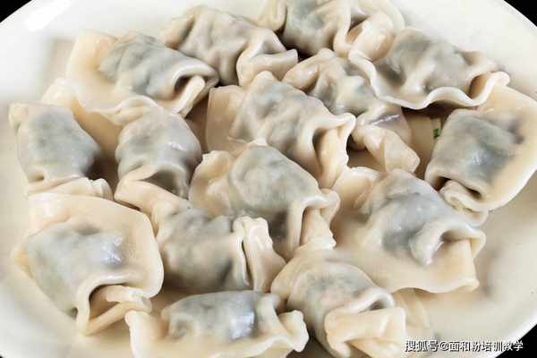 (3)将面团搓成条,揪成蛋黄大的剂子,擀成圆薄片,填入馅包成饺子,摆入屉内,大火蒸20分钟取出即成。