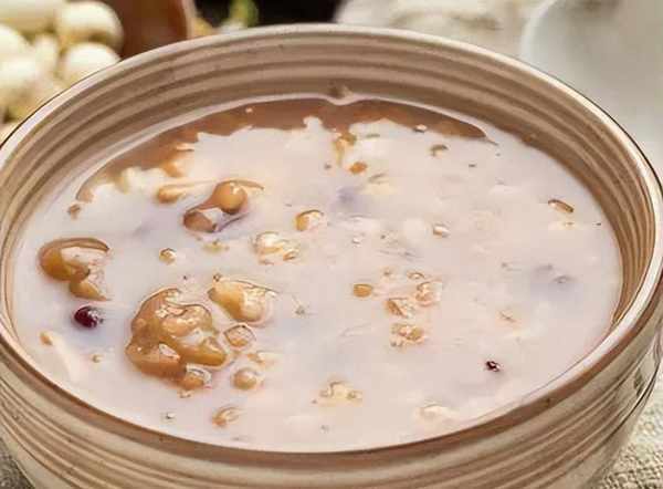 煮熟后的稀饭呈红色,色泽清淡,味道鲜美。
