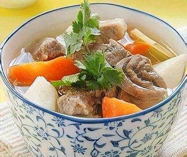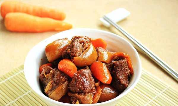4、一个小时后,加入胡萝卜,继续用文火炖至汤汁浓稠,胡萝卜变软,胡萝卜烤熟,羊肉即可出锅。不要完全沥干最后的汤。