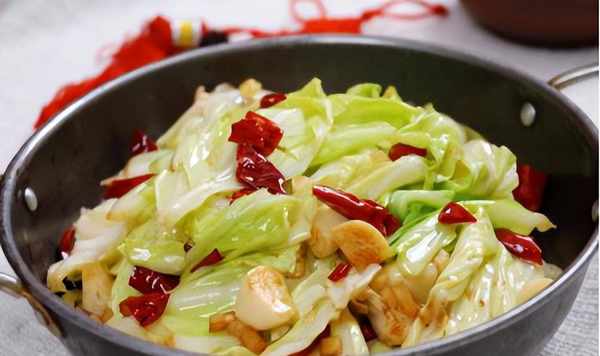 6、加入白菜用大火翻炒,白菜要炒烂,不要煮过头了。