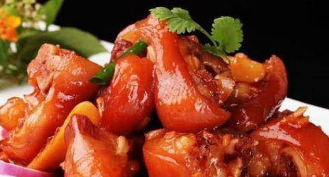 材料:猪蹄、辣蒜、葱结、姜、炸肉包、啤酒、黑酱油、冰糖