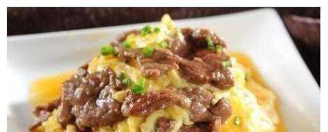 5、炒锅倒入油烧热,倒入盛有牛肉片的蛋液翻炒;