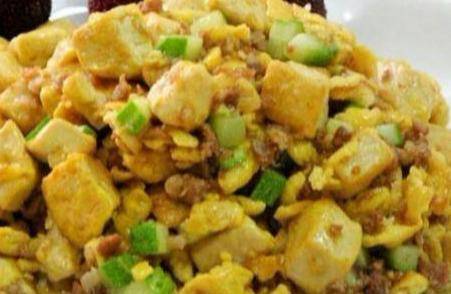 做法:1.豆腐洗净,切成小方块,用开水烫一下;