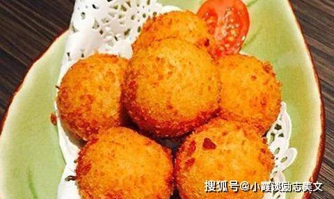 3、锅内油烧热至50%左右,将土豆球放入,小火炸至表面金黄,表皮略硬;