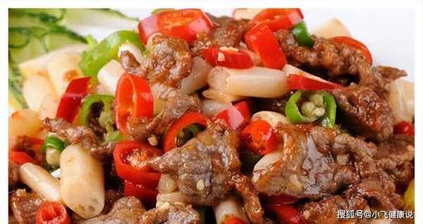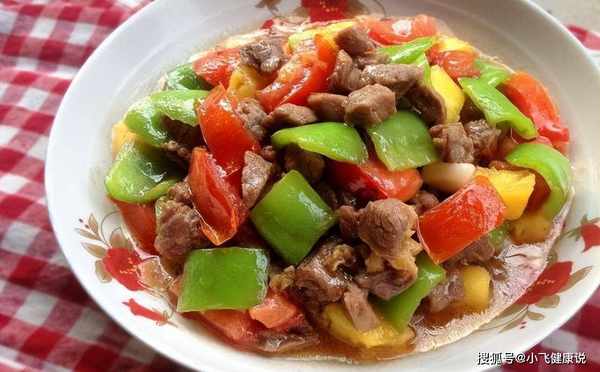 步骤:1.将牛肉切成薄片,将青椒和红椒磨碎。
