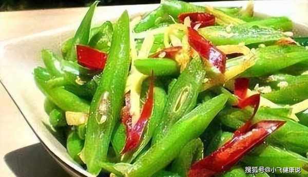 2、锅中烧开水,加入适量盐和几滴油,放入刀豆稍煮至7-8熟。
