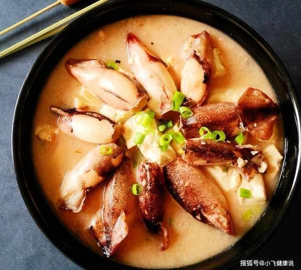 1、豆腐切小方块,撕去笔筒外皮,去掉头部不可食用的部分和体内的软骨,切小块。