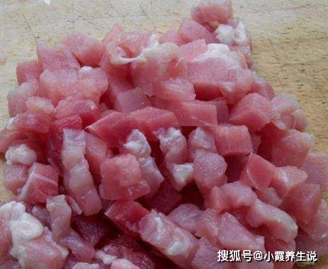 第二步,用手反复抓猪肉,然后加盐,不断用手抓猪肉。