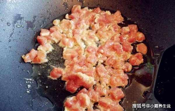 第五步:锅里放油,放入腌制好的肉块,快速翻炒,待肉变白后,放入辣椒圈,快速翻炒,出锅备用。