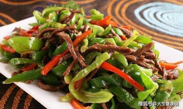 5、热锅下油,放入蒜末和青椒,加盐一起翻炒片刻;然后倒入牛肉一起快速煎熟,生牛肉就可以出锅了。