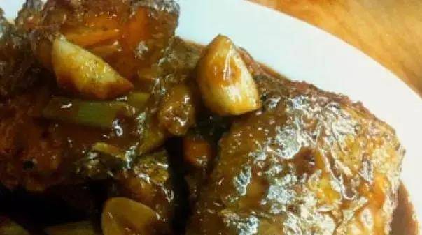材料:鸡根、土豆、食用油、盐、生抽、糖、姜、蒜