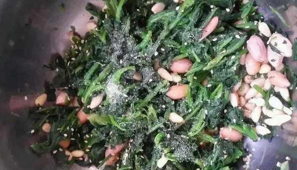 3.另一个锅里倒油,放入花生米炒熟。将热油倒入大碗中,加入糖、醋、盐等调料,最后将炸好的花生米倒入一起拌匀。