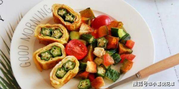 材料:鸡蛋、秋葵、南瓜、黄瓜、吐司、圣女果