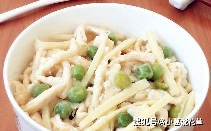 做法1.鸡胸肉和豌豆洗净,竹笋去皮洗净切丝。