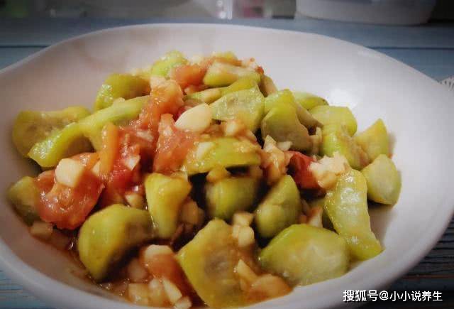 4.加入西红柿,中小火搅拌至西红柿呈糊状,让每片丝瓜都沾上西红柿汁。