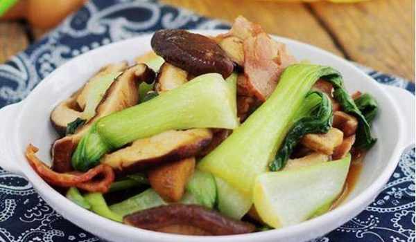 1、香菇、油菜洗净,香菇切薄片,培根切碎,葱姜切碎待用。