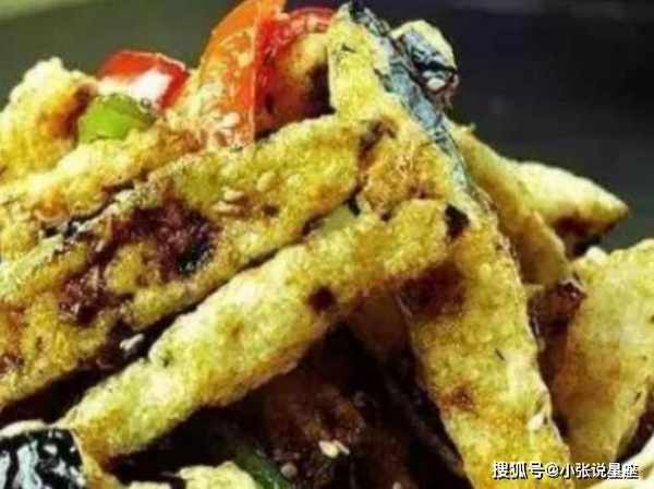 3、油再次烧热后,加入少许白醋,将茄子片炸至酥脆,捞出备用。