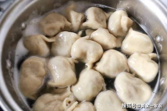 步骤6:饺子都包好了,锅中水烧开直接下饺子煮。煮沸腾,加一次凉水,煮沸腾加一次凉水,总共反复三次,看到饺子圆鼓鼓的浮在水面上,就说明已经熟了……赶紧捞出装盘趁热吃……