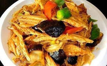 做法:1、豆腐块泡水,香菇切圆;胡萝卜切丝,红辣椒切丝;