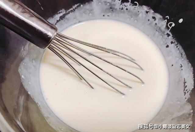 第一步:将4个鸡蛋的蛋清蛋黄分离,只取蛋黄,蛋黄中加入奶油、牛奶和糖搅拌均匀,再筛入生粉搅拌均匀,再过筛混合蛋液做成味道更微妙。