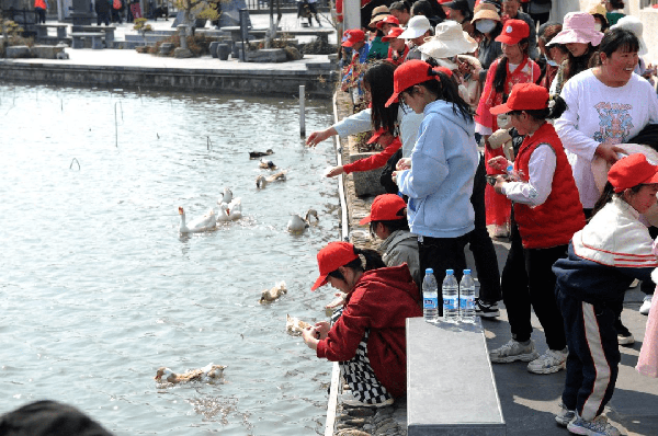 “最是一年春好处,踏春赏花正当时”此次活动以沉浸式体验开展为主,亲近大自然,踏青赏景喂鸭嘻鹅必不可少。在明经湖畔,三五成群的鸭鹅正嗷嗷待哺,同学们纷纷向其投喂鸭食,享受着与小动物们亲密交流的美好时光。