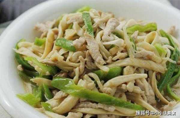 1、杏鲍菇手撕成条;肉丝中加入适量的盐、淀粉、料酒和生抽拌均匀腌制一下;热锅凉油,放入肉丝进去翻炒;肉丝翻炒变色后加入杏鲍菇丝进去翻炒;
